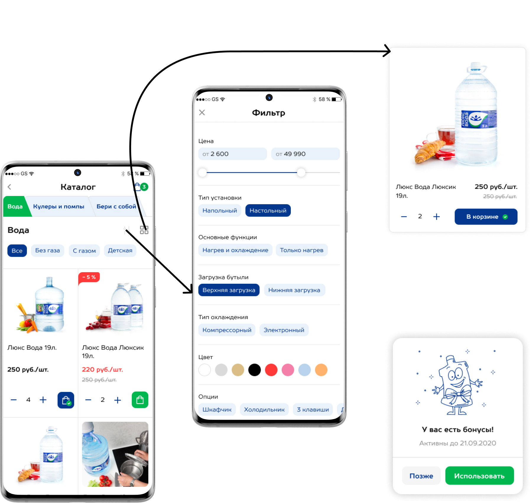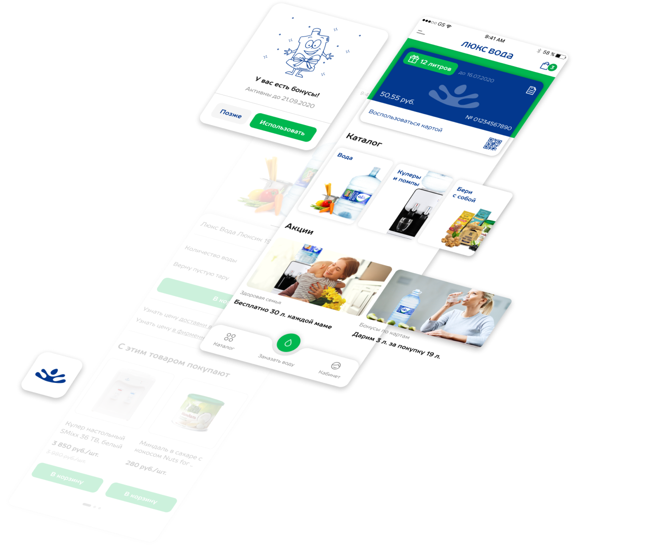 Мобильное приложение «Люкс Вода» — новый инструмент компании как для текущих клиентов, так и для новых клиентов. Виртуальная карта лояльности, привязанная к профилю каждого пользователя, позволяет компании накапливать и персонифицировать информацию о клиентах, анализировать покупки и тренды в поведении клиентов.