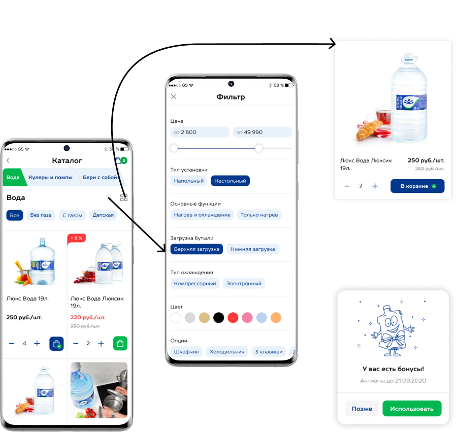 • Предоставление текущим клиентам компании удобного сервиса по заказу воды и сопутствующей продукции с учетом текущей программы лояльности (важный момент - новые механики акций и спецпредложений появляются каждый месяц).